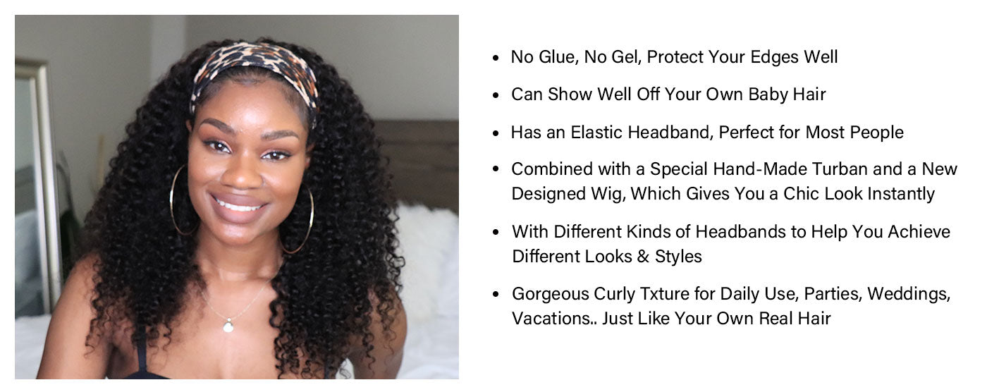 HairHive Kinky Curly Headband Wig Human Hair Scarf Wig No Gel No Glue Jerry Curl Hair Wig With Headband